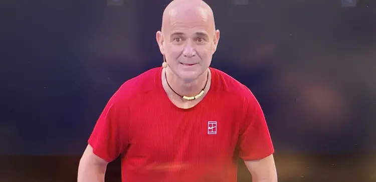 Andre Agasi je izazvao komešanje svojim ponašanjem na terenu pored Rodžera Federera u egzibicionom meču dublova na Australijan openu sa Lejtonom Hjuitom i Petom Rafterom.